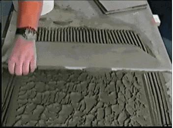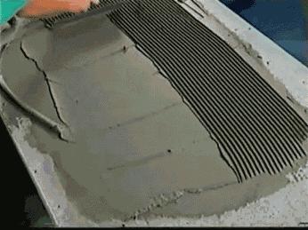 正确的批刮工艺应该是在水平的基面上,用齿形抹刀均匀的将瓷砖胶批刮成条状,这样就避免了分布的不均。
