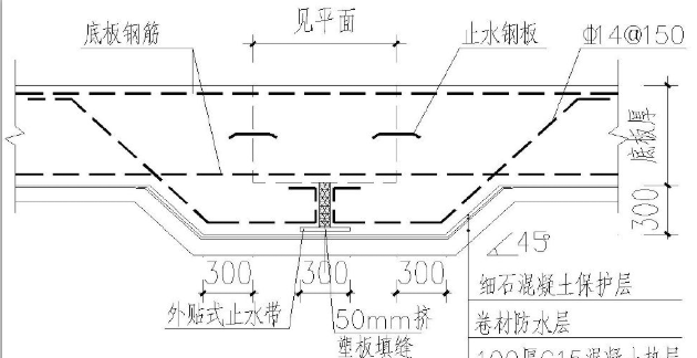 ④ 超前止水伸缩缝下加500宽防水附加层[Picture