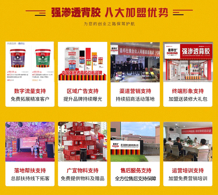 彭总的成功故事鼓舞着更多渴望成功的人们不止是泥工师傅,瓷砖店老板,装修公司,和德邦仕合作都是互利共赢的双赢局面,全国超300+的代理经销商不仅是对德邦仕公司品牌价值的证明,更是对追求梦想和实现成功的最好注解。正如彭总所说:“德邦仕一路陪伴着我的成长,我会一直珍惜这份合作,为我的梦想奋斗不息!”