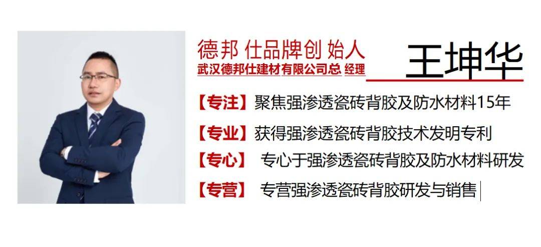 2011年,王坤华先生参加德国慕尼黑建材展(BAU),在展会上与德邦仕所在的实验室达成战略合作,同年12月份将DOBONS(德邦仕)品牌与这种具有“强渗透粘结材料”率先引入中国。