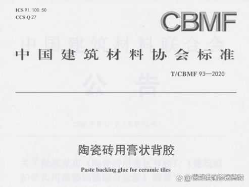 《陶瓷砖用膏状背胶》T/CBMF 93-2020执行标准规定,产品的原拉伸粘结强度、浸水后拉伸粘结强度、热老化后拉伸粘结强度及冻融循环后拉伸粘结强