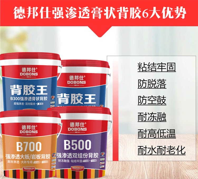 综上所述,乳液背胶缺点明显,2024年必将是膏状背胶的市场,因此从粘结力、使用寿命和施工难易度等方面来看,德邦仕强渗透膏状背胶更为优越的表现,终将占据市场的一席之地。